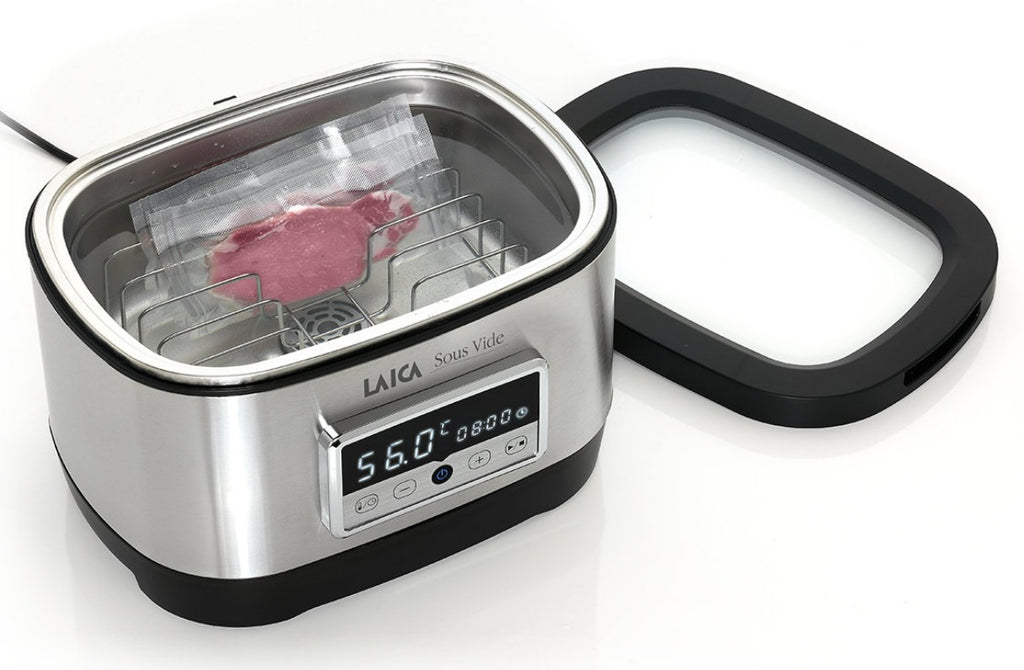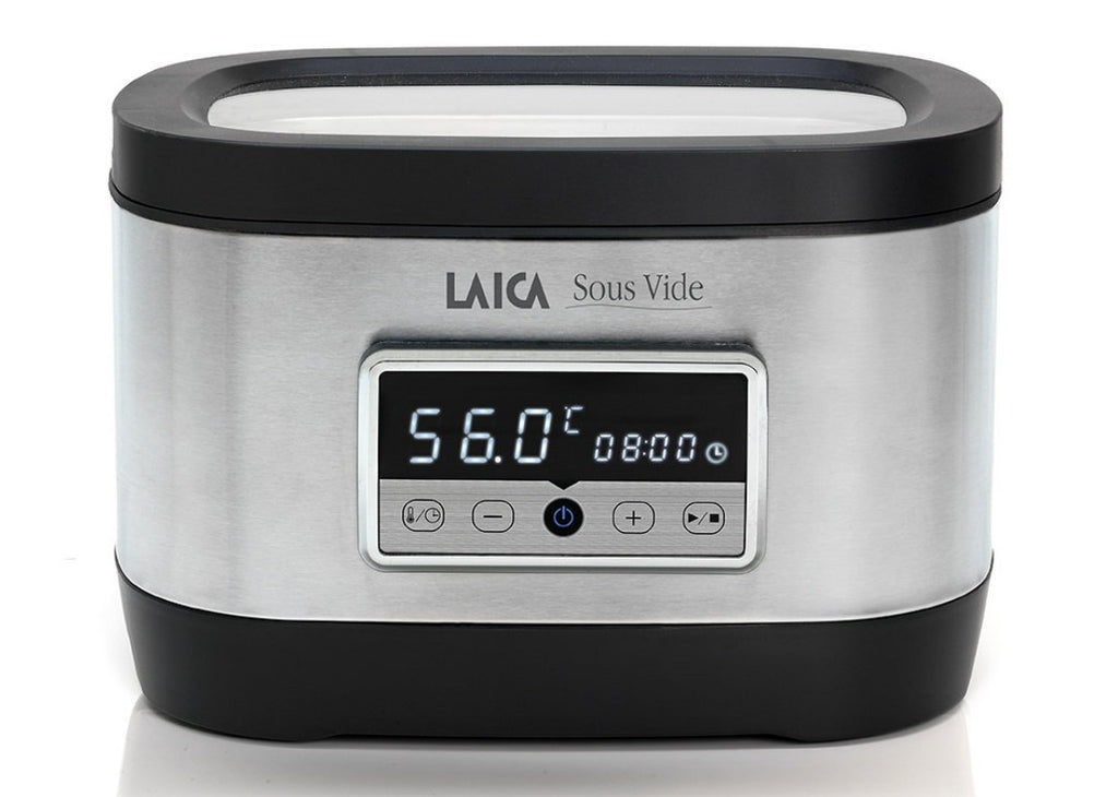 The Laica Sous Vide Water Oven is an easy to use appliance for precise low-temperature water bath cooking, featuring an 8L capacity. It comes with a grid and agitator, uses vacuum-sealed bags, and offers consistent, flavourful results by cooking food evenly in a controlled water environment, ideal for meats, fish, and vegetables.